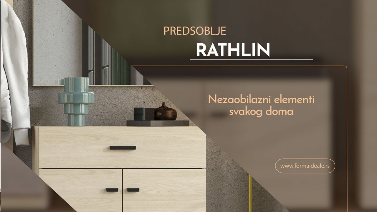 Estetika kontrasta i geometrijske pravilnostiPredsoblje RATHLIN odlikuje se kombinacijom savremenog stila i elegancije i predstavlja ambijentalno rešenje za predsoblje koje se ističe pravilnim dizajnerskim linijama i kontrastim dekorima koji to naglašavaju, ali i veoma bogatom upotrebnom prostoru. Predstavljeno je u dve kombinacije dekora. Topliju estetiku enterijeru daje kombinacija dekoa artisan hrasta i crne mat folije, dok kombinacija kašmir dekora i crne mat folije više ističe eleganciju i otmenost.