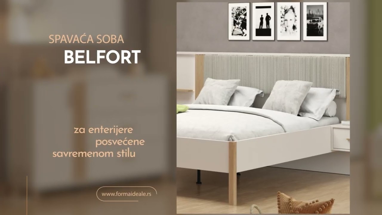 Spavaća soba BELFORT predstavlja moderno rešenje za stilizovanje ambijenta doma. Kombinacija dekora artisan hrasta, kašmira i artisan hrast folije donosi u prostor notu elegancije i ambijentalne topline, kao i sofisticirani stilski izraz koji je potreban savremenim enterijerima. Ova kolekcija se sastoji od 6 elemenata za opremanje spavaće sobe, i to su: Ormar BELFORT 5K1O h205, Noćni ormarić BELFORT NO2F, Noćni ormarić BELFORT NO3F, Bračni krevet BELFORT 160, Bračni krevet BELFORT 180 i Fioka za krevet BELFORT BD prednja.